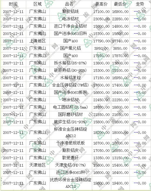 2007-12-11 00:00:00 铝业行情