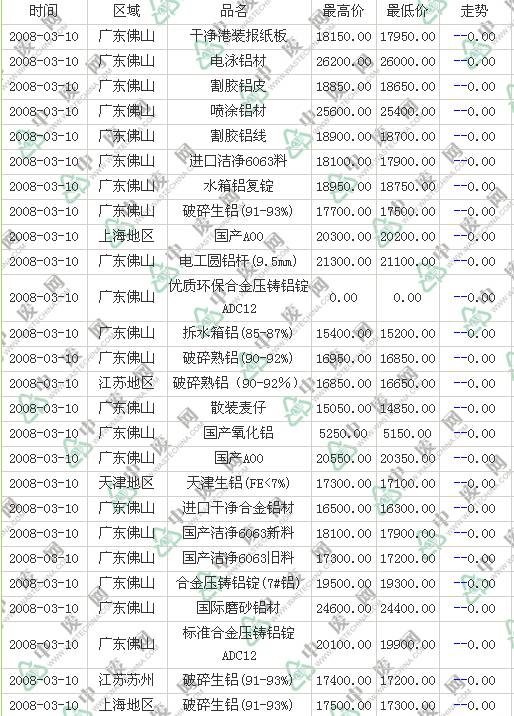 2008-03-10 00:00:00 铝业行情